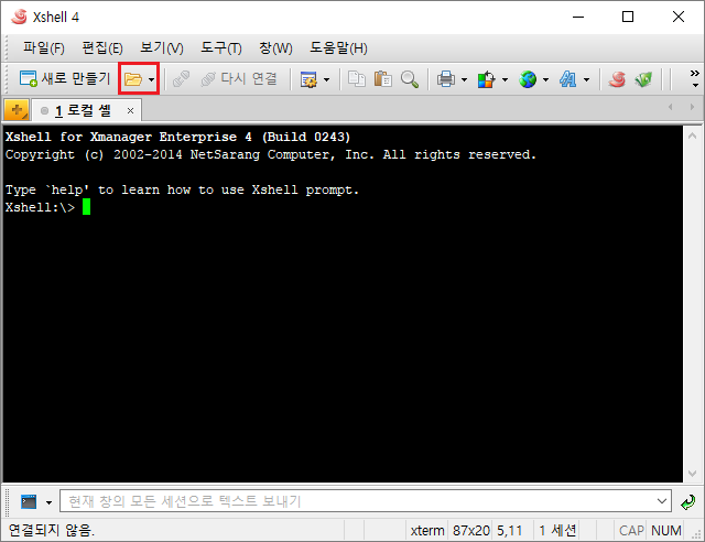Xshell을 실행 후열기를 선택한다.