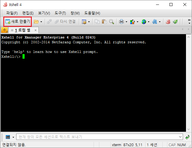 Xshell을 실행 후새로 만들기를 선택한다.
